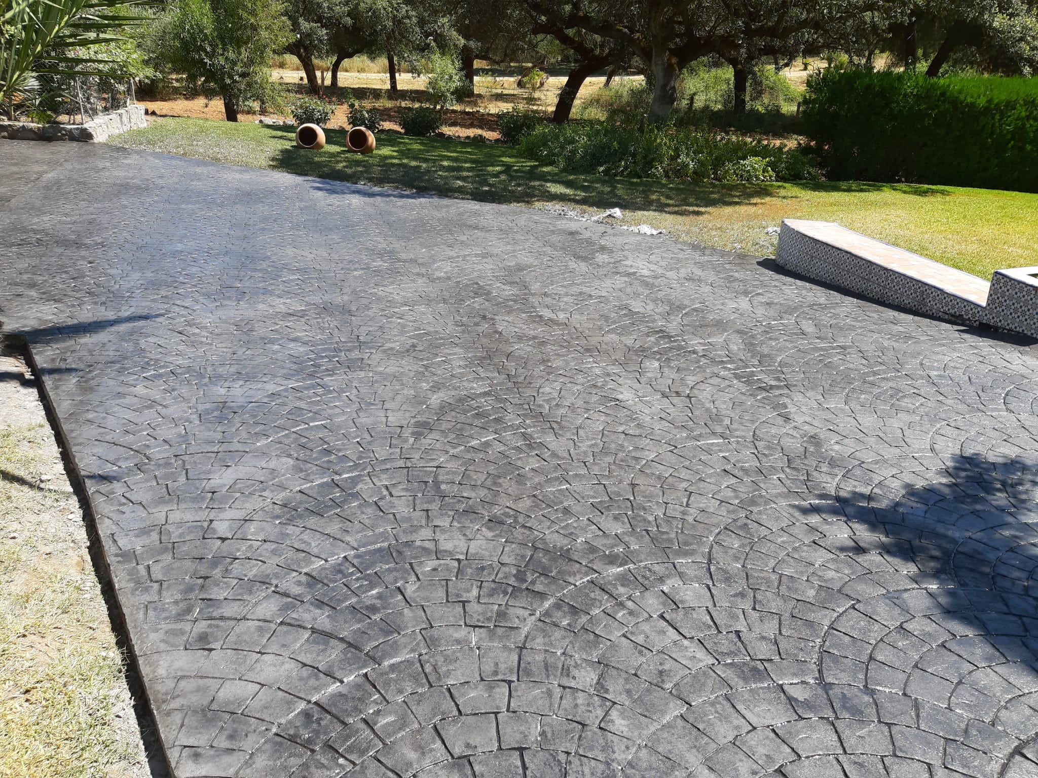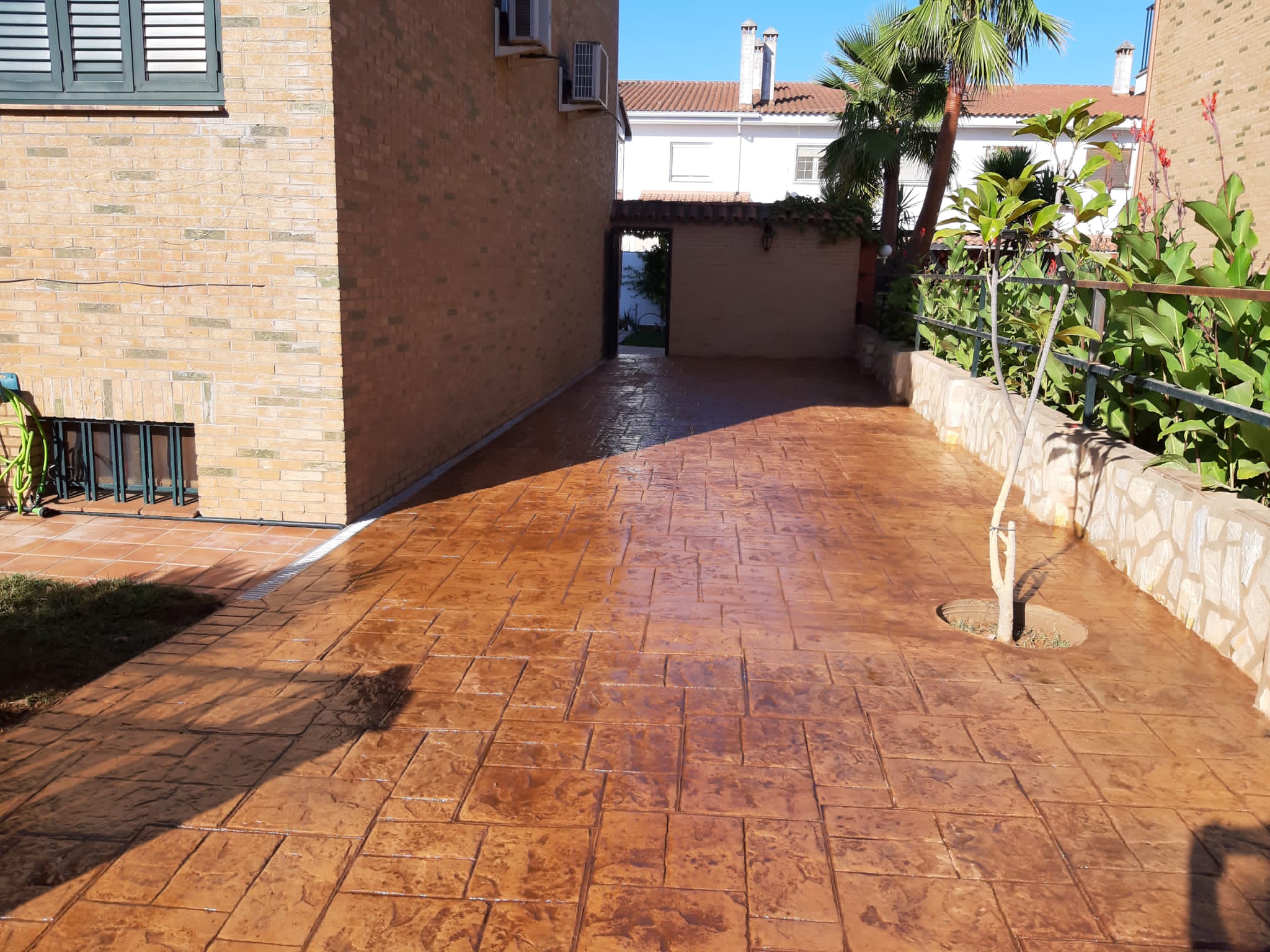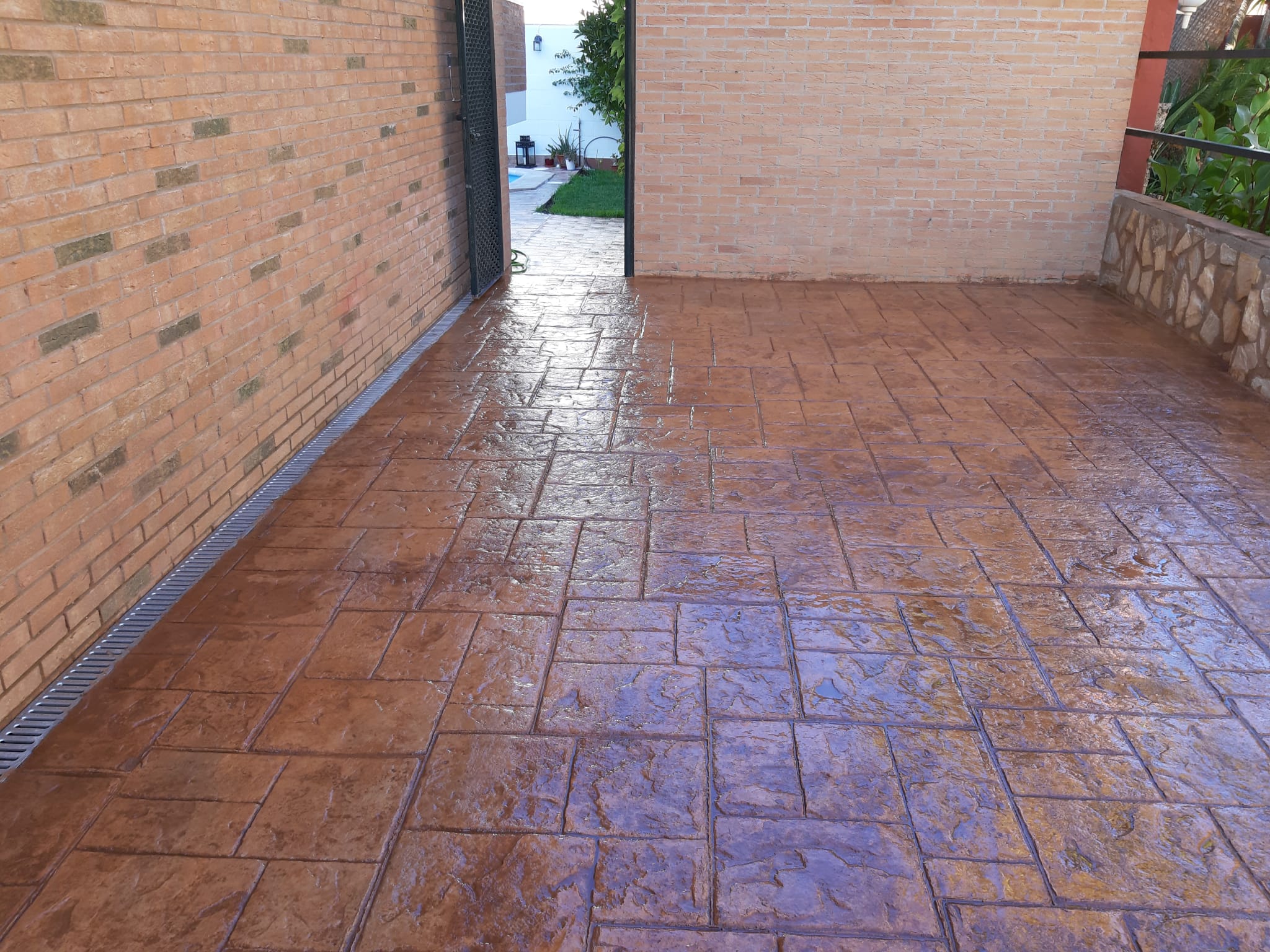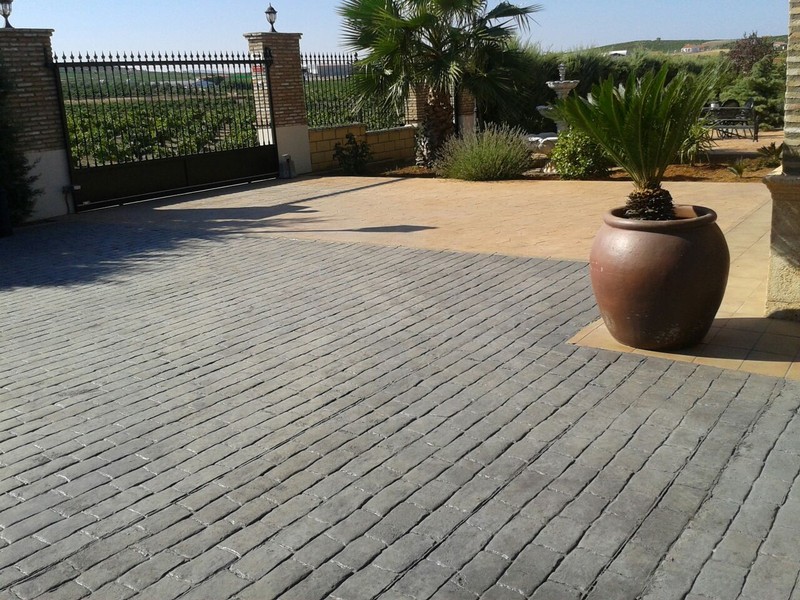 Pavimento de hormigón impreso para patios, piscinas, garajes, entradas de chalet.