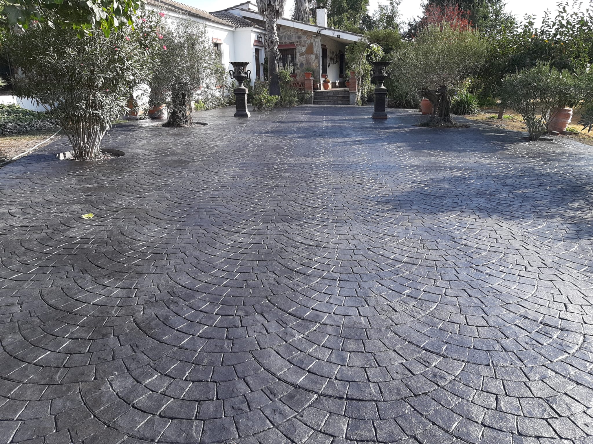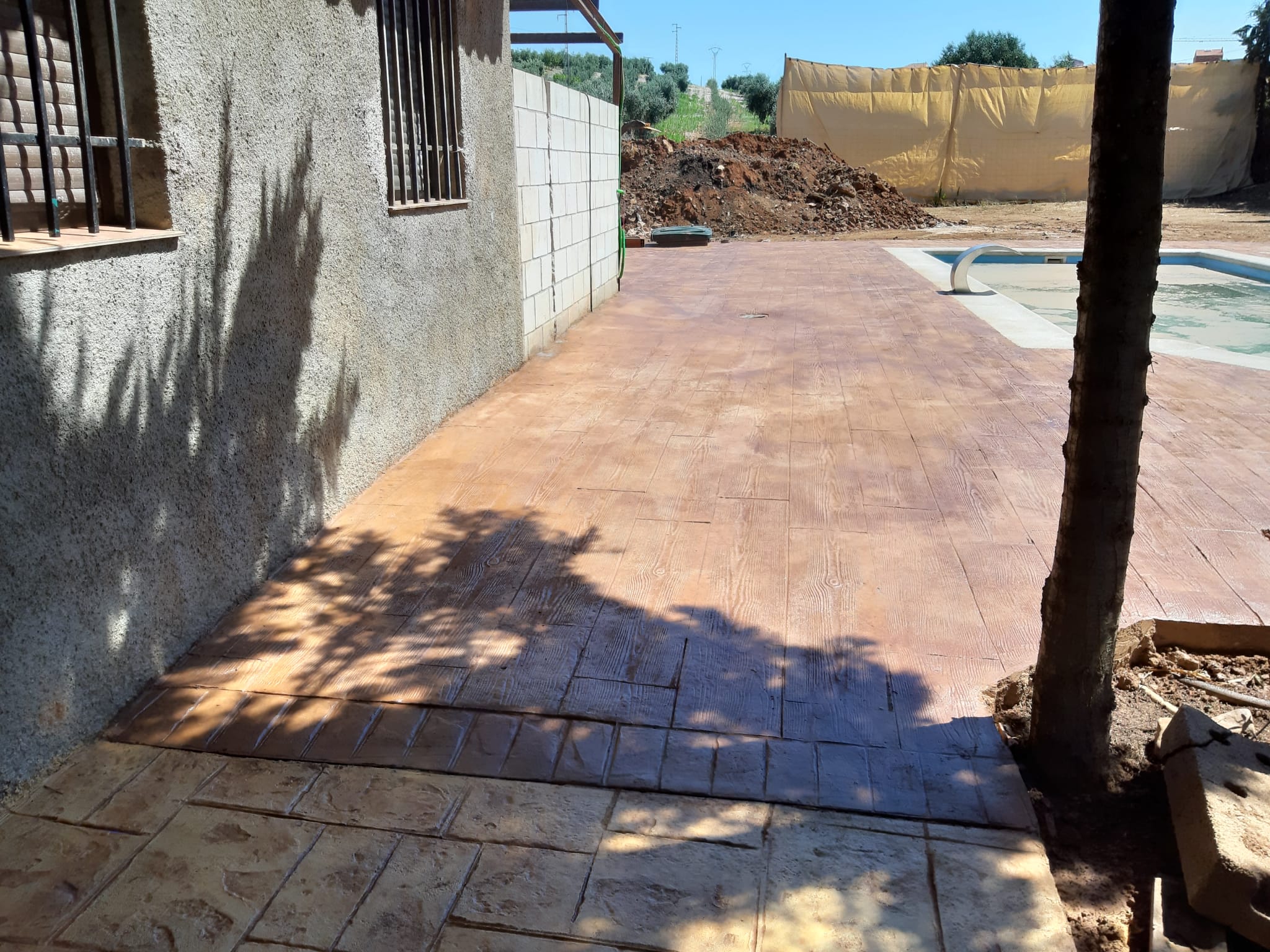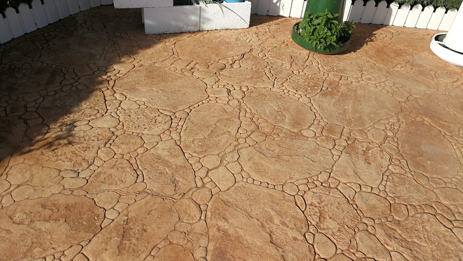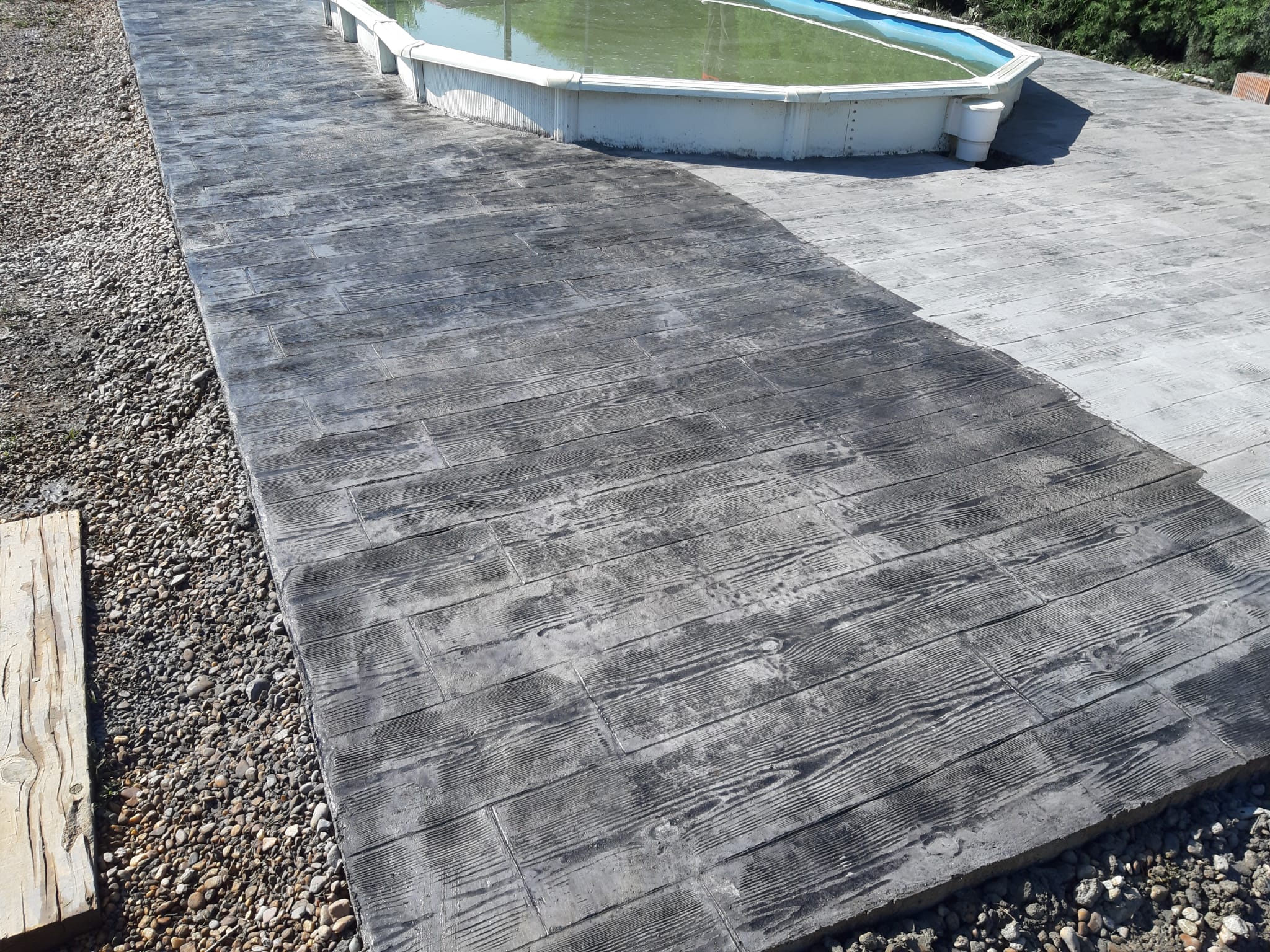 Pavimento de hormigón impreso para patios, piscinas, garajes, entradas de chalet.