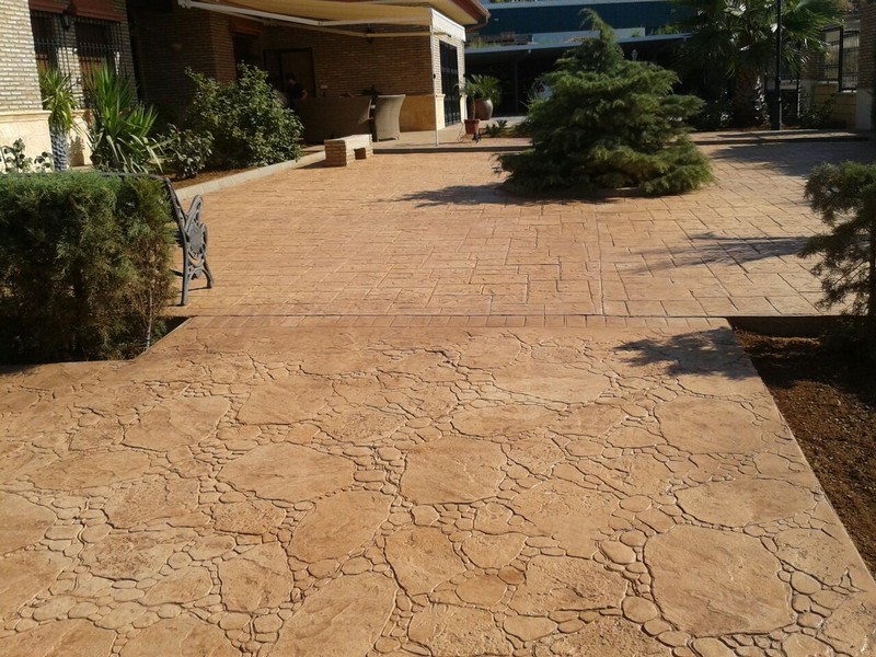 El hormigón impreso es un sistema de pavimentación consistente en colorear una base de hormigón previamente extendida que seguidamente se moldea con la forma y textura elegida por el cliente.